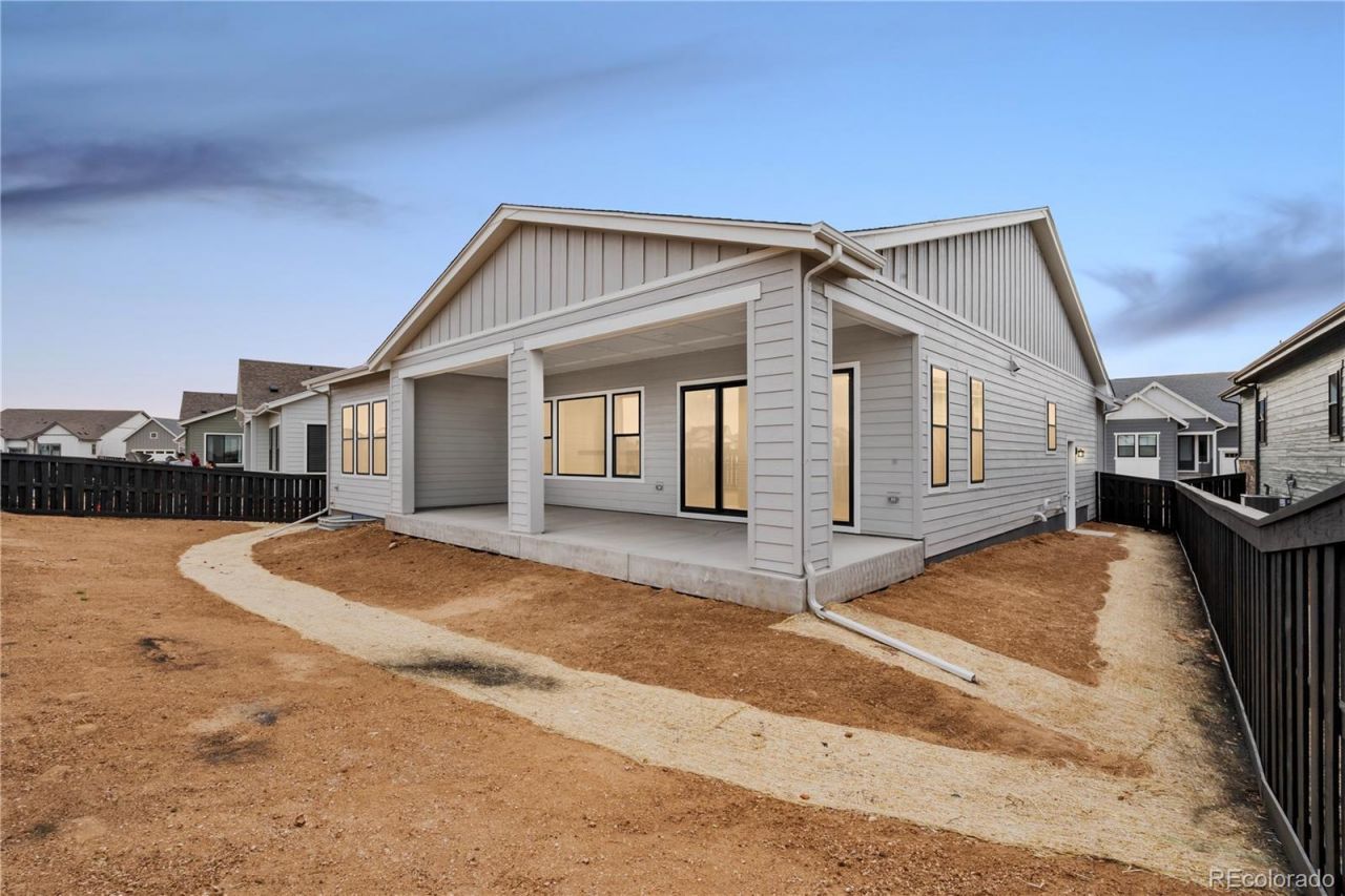 Beautiful one-story home in the desirable Solstice Community by Shea Homes. Solstice is surrounded by Chatfield State Park on 3 sides of the community and acreage parcels on the 4th side. This home has 3 bedrooms, study, finished basement with wet bar, fireplace with full height tile surround, covered patio, and 3-bay split garage. Design finishes include Evoke luxury plank flooring in Summit/Peyton, MSI engineered stone counter tops in Carrara Delphi, horizontal iron railings, and Yorktowne maple cabinets in Dockside. Please contact a community representative for details. The Mirabelle Metropolitan Districts provide various services to the property and in addition to the estimated taxes, a $40 per month operations fee is imposed.