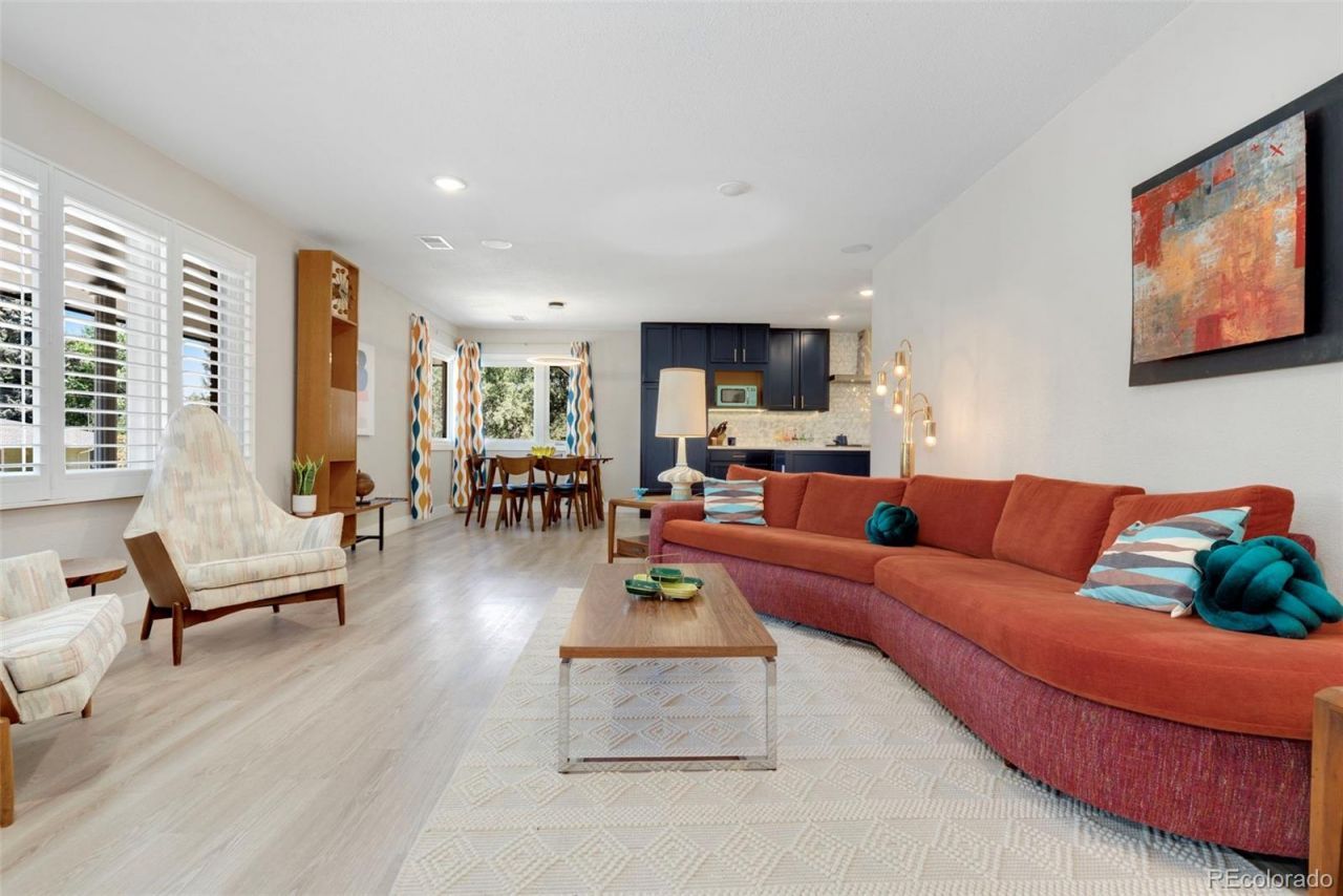 Fully Updated Midcentury Modern 5 Bed, 4 Bath, 3,200 SF NO HOA NO Metro DistrictTimeless 1965 midcentury modern on a DOUBLE LOT with no HOA restrictions-park your RV, raise backyard chickens, or explore short-term rental potential. This 5-bedroom, 4-bathroom home blends classic architectural charm with complete modern updates (mechanicals updated 2022). Sun-drenched living room with picture windows and electric fireplace flows into the dining area and chefs kitchen featuring an 11-foot quartz island and 48-inch 6-burner gas range with pasta arm. Main floor offers 3 bedrooms including primary suite plus enclosed sunroom. Fully finished basement with 100 projector screen, wet bar, second fireplace, 2 additional bedrooms, and flex room.LOCATION: Minutes to Sweet Heart Winery, 15 min to Big Thompson Canyon fly fishing, less than 30 miles to Estes Park, 45 min to Rocky Mountain National Park. Under 10 min to Mariana Butte Golf Course & Devils Backbone hiking trails. Walk to Mehaffey Park (1 mile), Jamoka Joes coffee, and grocery store. ADU potential under Colorados new housing laws.Outside city limits = freedom + privacy. Hot tub, apple tree, patio, grass-your Colorado lifestyle awaits!