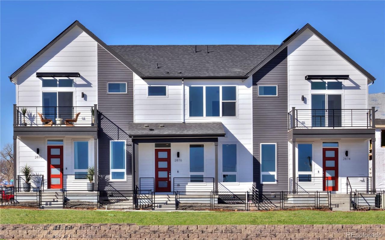 VIEWS, VIEWS, VIEWS! Enjoy stunning mountain and city views from this beautifully designed new construction townhome, located just steps from Loretto Heights Park in one of southwest Denvers most exciting emerging neighborhoods. This 2,078 sq. ft. all-electric, 2-story home offers a spacious open floor plan with 4 bedrooms and 4.5 bathrooms?designed for modern living and effortless entertaining. The main level features a beautifully appointed kitchen with a large center island that flows seamlessly into the expansive living area, highlighted by a cozy fireplace and abundant natural light. Step outside to your welcoming front porch and private fenced yard?perfect for enjoying Colorados sunshine, outdoor dining, or relaxing with friends.Upstairs, the primary suite is a peaceful retreat featuring a private deck with sweeping mountain and city views, ideal for morning coffee or quiet evenings. The luxurious ensuite bath includes a double vanity, floor-to-ceiling tiled shower with bench, and a private water closet. This level also includes a convenient laundry room and two additional bedrooms, each with walk-in closets and their own full bathrooms. The finished basement provides even more flexible space with a large rec room, an additional bedroom, and a full bathroom?perfect for guests, a home office, gym, or media room. A spacious 2-car garage adds convenience and extra storage. Unlike resale homes, this new construction Thrive home offers the benefits of modern efficiency and peace of mind, including all-electric living, advanced energy-efficient construction, and a comprehensive builder warranty with maintenance coverage?helping make homeownership simpler and more predictable. Located in the historic Loretto Heights neighborhood, the community blends rich heritage with modern convenience. Enjoy nearby parks, bike trails, shops, restaurants, theaters, and public transit with easy access to downtown Denver and the mountains. Photos shown are of model homes.