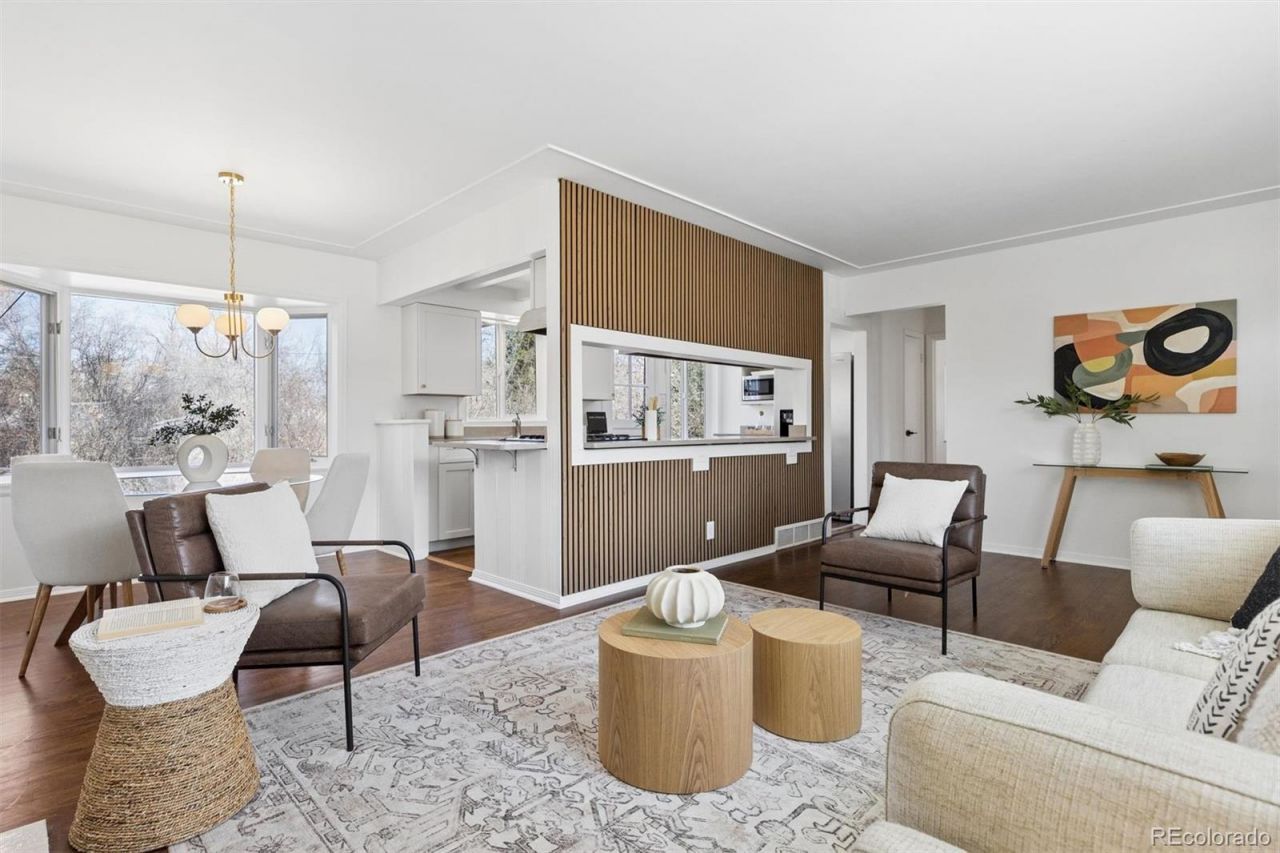 This charming ranch-style home located in the coveted Cherry Creek School District and top-rated Cherry Creek High School boundaries offers the perfect blend of updated elegance and timeless comfort, all on a large, private lot with mature landscaping. Step inside to nearly 2,300 sq ft of thoughtfully refreshed living space, featuring fresh paint throughout, redone wood floors, modern lighting, newer roof and hot water heater, and more. The bright, casually elegant kitchen flows seamlessly into the dining area and beyond, with crisp white cabinetry, gold hardware, a sleek new refrigerator, and an open sightline that makes entertaining feel effortless. Large bay windows let in tons of natural light, while the first of two cozy fireplaces anchors the large main living room. Three main floor bedrooms, including the Primary with a private half bath plus a convenient full bath complete the main floor. Downstairs, a massive fourth bedroom provides plenty of space for a guest suite, or home office or gym area. The second fireplace creates a charming media/game room in the large living area; perfect for fun game or movie nights. A third bathroom, along with a large laundry and utility area complete the basement. Outside, the expansive backyard oasis with mature trees provides plenty of room for play, gardening, or simply unwinding around the fire pit under the stars. Ideally located near Yale & I-25 light rail, with Cherry Creek or DTC just minutes away, yet situated in a quiet neighborhood, this updated home is an ideal combination of style, size and location. Dont miss out!