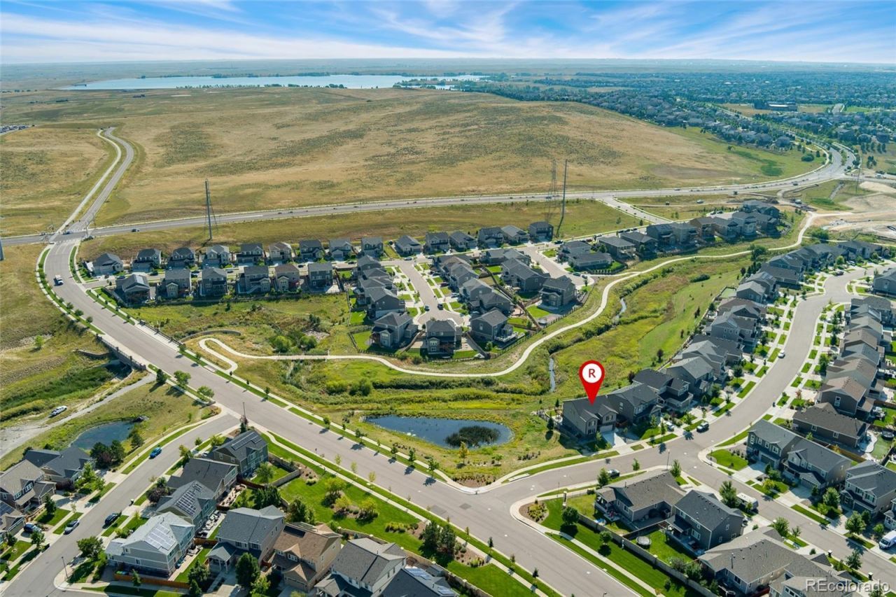Gorgeous two-story home set on a private lot in southeast Aurora, where open space and wide views create a sense of room to breathe from the moment you arrive. Natural light pours through oversized windows, filling the home with warmth and highlighting the clean lines, bright tones, and tasteful finishes throughout. Thoughtfully designed and extremely well-maintained, this home offers a layout that feels both elevated and easy to live in. The main level flows seamlessly from the living area into a beautifully appointed kitchen, featuring quartz countertops, stainless steel appliances, a striking backsplash, a walk-in pantry, and a large island with breakfast bar seating. Pendant lighting adds a touch of style while LVP flooring runs throughout the main level, creating a cohesive look that is both durable and refined. The open design makes everyday living effortless, and entertaining feels natural. Upstairs, a spacious loft provides flexible living space ideal for a second lounge, home office, or play area. The primary suite is bright and inviting, complete with a five-piece bathroom and a large walk-in closet, offering a comfortable retreat at the end of the day, while additional bedrooms are well-sized and thoughtfully positioned. The finished basement expands the home even further with a large open area perfect for a media room, home gym, or additional flex space. Outdoor living is just as impressive. An elevated deck overlooks nearby open space and walking trails, creating a peaceful backdrop with added privacy. The backyard is designed for ease and enjoyment with low-maintenance turf, clean landscaping, and a patio ready for relaxing or entertaining. Additional features include an increased-capacity water heater installed in 2022. Located in a desirable community with friendly neighbors and close proximity to Southlands Mall, Aurora Reservoir, and miles of trails, this home offers the perfect balance of space, style, and convenience.
