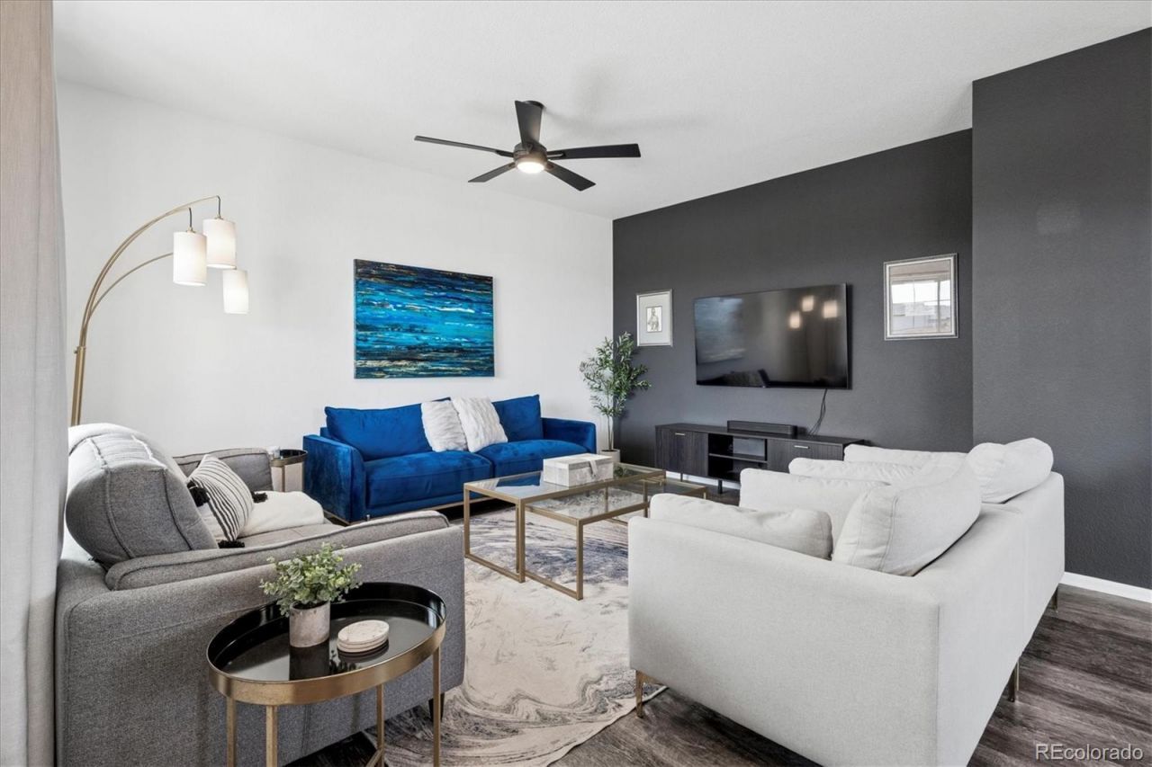 * Welcome Home to this Updated and Stunning Single Family Home in Lincoln Creek Village with 4 Bedrooms and 3 Bathrooms * The main level has a light and modern color scheme, high ceilings and recessed lighting throughout * Picture windows in the Living and Dining Rooms bring in loads of natural light, which adds to the welcoming feeling of this property * The roomy Living Room has room for family and friends to gather, and is open to the Dining Room and Kitchen * A well-equipped Kitchen has slab granite counters , plenty of cabinets for storage, and a pantry * The oversized island can accommadate 4 stools, and includes the large under-mount sink * A glass panel door leads from the Kitchen to the patio and the easily maintained back yard * A stylish guest bath is tucked away near the access to the attached garage * All four bedrooms are on the upper level - the primary suite is roomy with an ensuite bath and walk-in closet * An over-sized walk-in shower, comfort height vanity with dual sinks, and updated fixtures make self-care easy * The secondary bedroom closest to the Primary could be perfect as a work out space, private office or nursery * The other two bedrooms each have amazing views to the West, well-sized closets and ceiling fans * A spacious full bath with dual sinks and updated fixtures, and a coveted upper level laundry room complete this level * The attached garage has room for storage and access to the crawl space, with additional parking on the driveway * The community includes maintenance of the front yards, landscaping and snow removal on the main sidewalks * Great location only minutes from parks, trails, highways, shopping, restaurants and entertainment * Features include: All carpet replaced with high-end pad and carpet, new interior paint, pergola on stamped concrete patio, turf installed in back yard, new kitchen backsplash, storm doors front & back * This home has it ALL * Set a showing today!