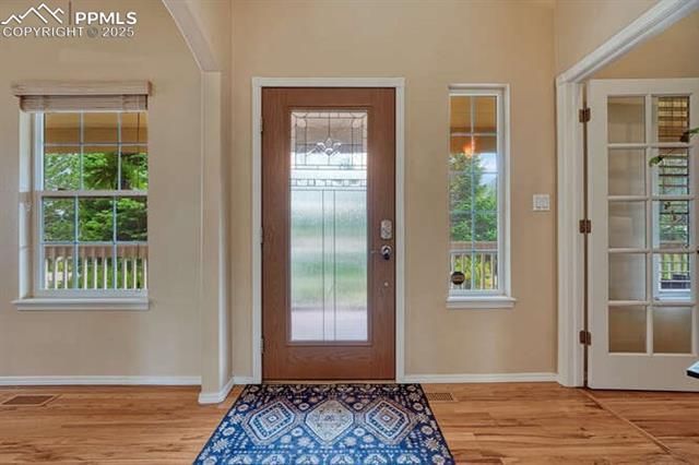 Experience the best of Colorado living in Palmer Lake! Nestled on a serene cul-de-sac, this one-owner home offers unparalleled 360-degree mtn views & the striking beauty of red rock formations on a sprawling, treed one-acre lot. Thoughtfully upgraded, the kitchen is a chef’s dream w/ sleek quartz countertops, a stylish backsplash, & under-cabinet lighting. Main-level living includes a spacious primary suite w/ a 5-piece bath & jetted tub, plus 2 addtl bedrooms & a versatile office/library space—perfect for working from home. Two cozy family rooms, both w/ gas fireplaces, provide inviting spaces to gather, while the upper deck offers a unique vantage point to admire the iconic Palmer Lake Star. Outdoor living is just as enticing, w/ a wraparound porch, large back deck, & hot-tub-ready patio, ideal for relaxing or entertaining. The walkout basement is filled with natural light, pre-wired for surround sound, & features two addtl bedrooms, including a second primary suite w/ a generous walk-in closet. Storage is abundant w/ an oversized three-car garage & a fully fenced backyard that feels like your own private retreat. The property also includes a separate outbuilding w/ its own deck, 100-amp electrical service, insulation, & pellet stove—ideal for a workshop, studio, or potential rental opportunity. Recent mechanical updates include a new furnace & newer hot water heater, providing added comfort & peace of mind. Perfectly located near dining, shopping, & top-rated Lewis-Palmer District 38 schools, minutes from Monument, 30 minutes to downtown Colo Springs, & 35 minutes to the Denver Tech Center. Outdoor enthusiasts will appreciate easy access to hiking, paddleboarding, horseback riding, & nearby Palmer Lake for fishing/kayaking. Palmer Lake is known for its charming downtown, vibrant local events like the Yule Log Hunt & annual fireworks, & the scenic Santa Fe Trail for biking/running. This exceptional home beautifully blends small-town charm with modern convenience.