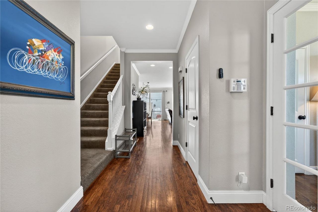 Set on a desirable corner lot in Denvers vibrant Northfield community, this thoughtfully designed home pairs clean, modern living with classic farmhouse charm, where expansive mountain views and abundant natural light create an airy, welcoming feel from the moment you step inside. The main level unfolds with intention, offering an open layout that balances everyday comfort with effortless entertaining, anchored by a beautifully appointed kitchen featuring custom cabinetry, slab granite countertops, stainless steel appliances, and a generous island that naturally draws people in. Just off the main living space, a private office with French doors provides the perfect spot to work, focus, or reset. Upstairs, the primary suite offers a peaceful retreat with mountain views and a well-designed five-piece bath, while additional bedrooms are comfortably sized and thoughtfully arranged to suit a variety of needs. The finished basement extends the living space even further, complete with a spacious family room, wet bar, and dedicated fitness area that makes hosting, relaxing, or staying active feel easy. Outside, the backyard creates a comfortable setting to unwind and take in Colorado sunsets, while the corner lot placement adds a sense of openness and presence. All of this is set within one of Denvers most sought-after communities, with parks, trails, shopping, and dining just moments away, making this a home that lives easily and feels connected to everything around it.